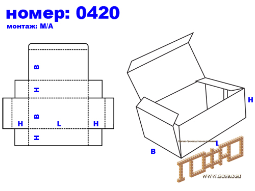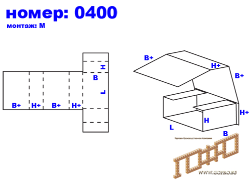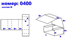 04xx — оберточные короба и большинство штампованных коробов, собираемые с помощью язычковых соединений без клея, скоб, липких лент и других вспомогательных материалов.