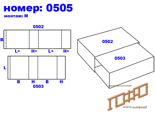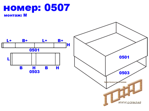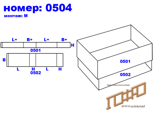 05xx — короба собираемые с помощью клея, скоб, лент из деталей типа рамы, а так же отдельные детали рамы (остова) для других типов ящиков.