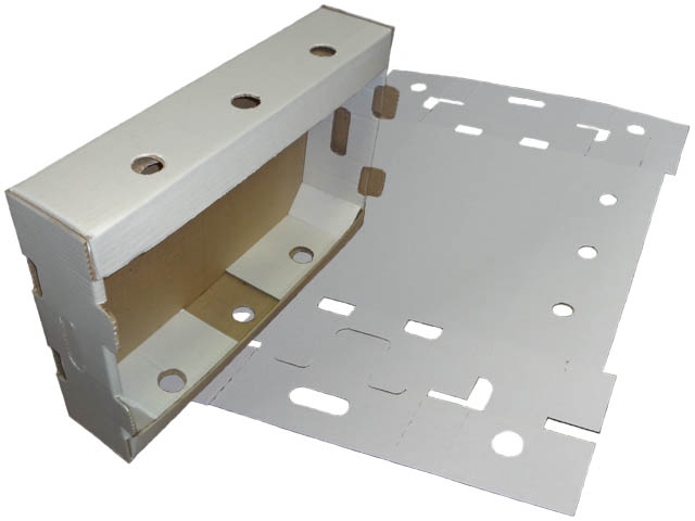 Как правило при изготовлении гофролотков, для упаковки пищевой продукции, используем трехслойный гофрированный картон марок "Т-23" и "Т-24" с профилем "В" или "С" с белым или бурым поверхностным слоем (ГОСТ 7376-89). Для экономии возможно изготовить из более низких марок целлюлозных слоев "Т-21" и "Т-22" или из более плотных "Т-25" и "Т-26". Если необходима совсем жесткая конструкция лотка, можно изготовить из пятислойного гофрокартона марок П-31, П-32, П-33, П-34 и П-35, с профилями "ВС", "ЕВ" и "ЕС".